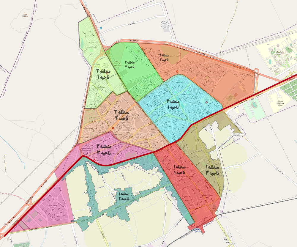 مختصات و محدوده شهری شهرداری منطقه دو مطابق نقشه مشخص شده است .